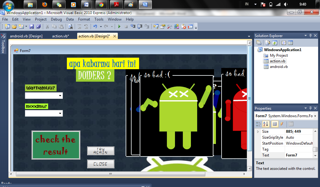 maka program akan menampilkan form 3 dan menyembunyikan Form 2